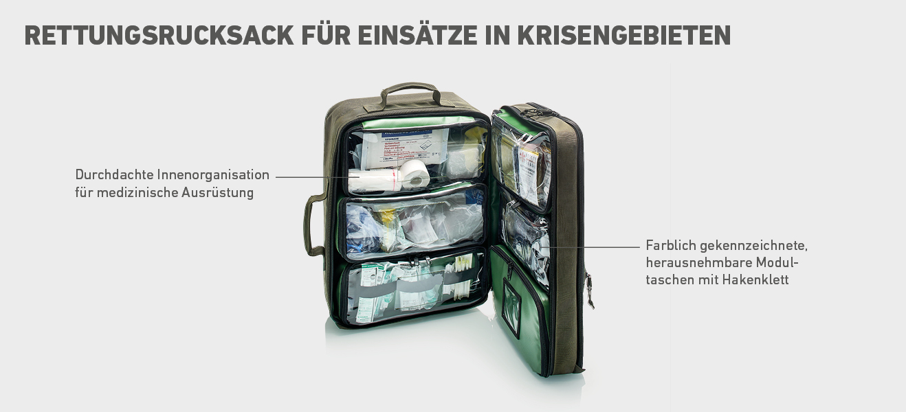 - Einsatztaschen für die medizinische Erstversorgung für Rettungsassistenten, Notärzte, Feuerwehr, Bergwacht, Seerettung, THW etc.
