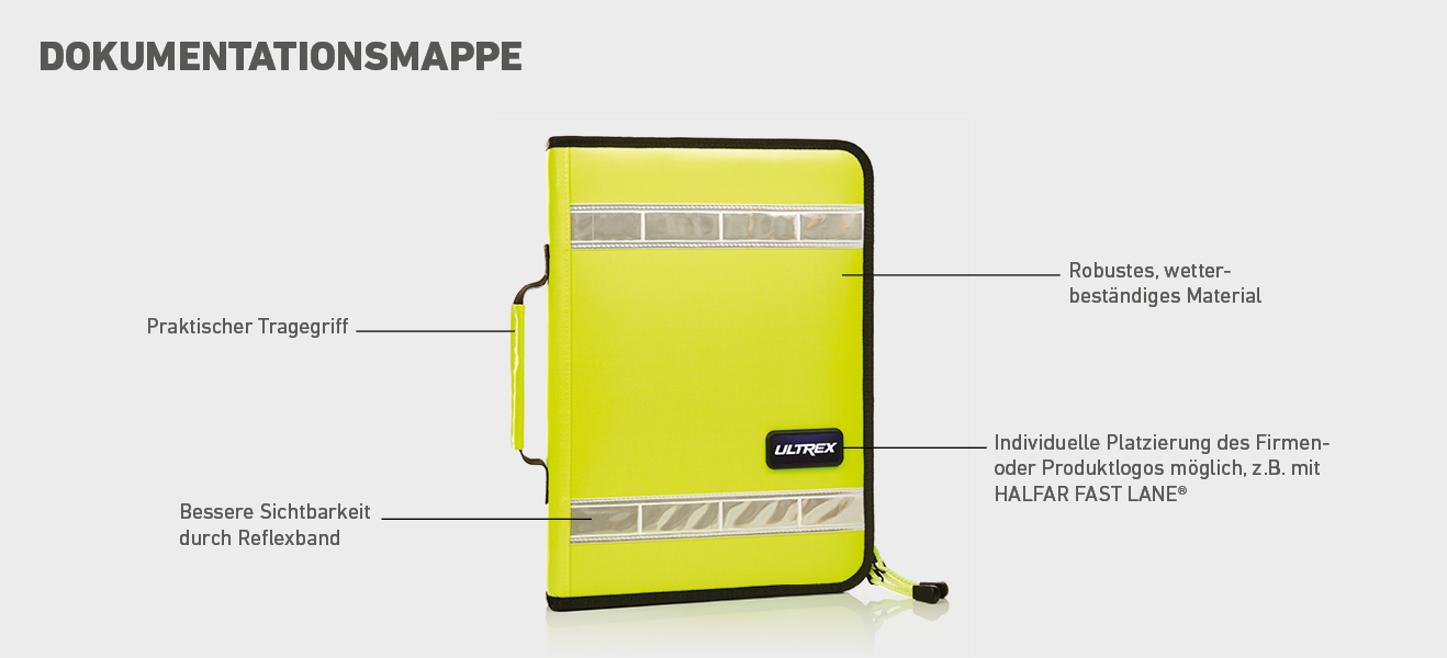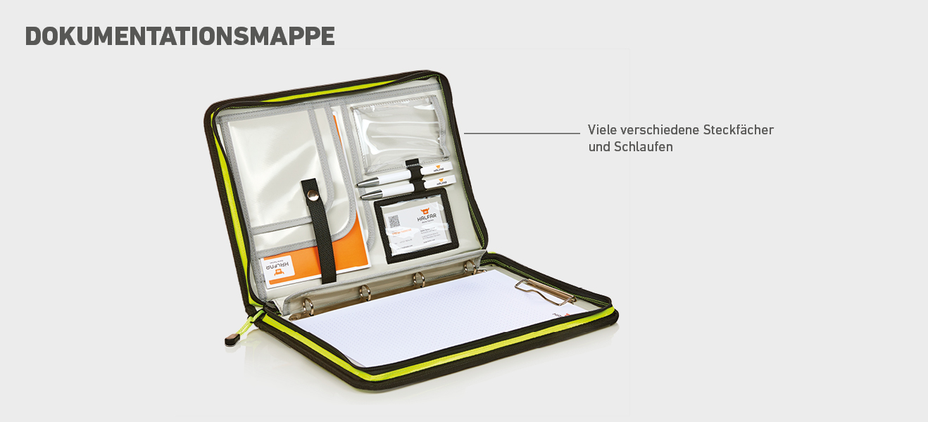 - KFZ-Ausstattung: als Dokumententasche, Boardbuchmappe, KFZ-Verbandtasche, Hülle für Warnwesten etc.