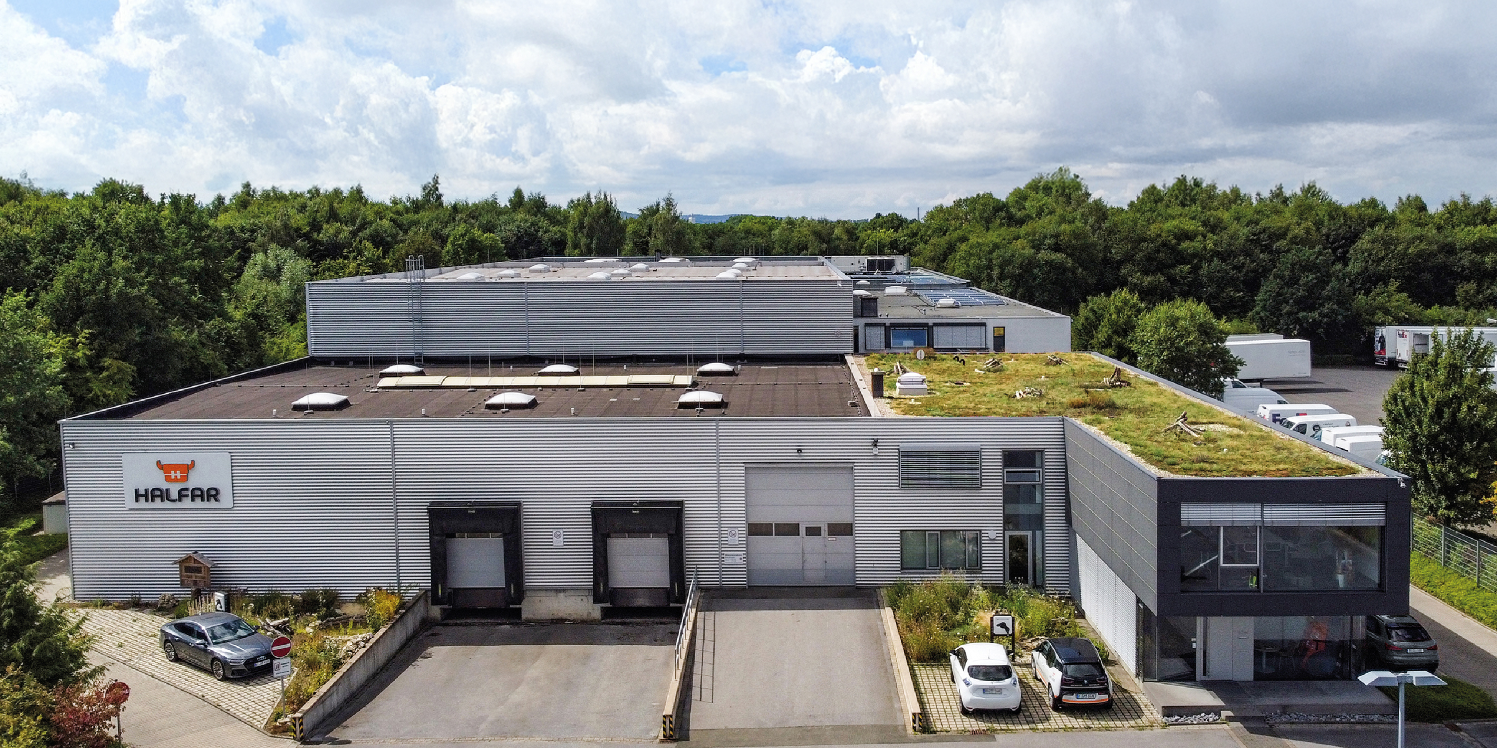 Unser Unternehmensgebäude stellt den Mittelpunkt unseres täglichen Schaffens dar und ist somit auch der Ausgangspunkt unserer Nachhaltigkeitsmaßnahmen. Grundsätzlich ist unser Gebäude bereits in seiner ursprünglichen Planung nachhaltig konzipiert. So wirkt die Ausrichtung der Büros nach Norden einer unnötigen Wärmeentwicklung entgegen. Darüber hinaus sind in allen neuen Gebäudeabschnitten dem Stand der Technik entsprechende bauliche Maßnahmen zur nachhaltigen Bewirtschaftung eingeflossen oder wurden nachgerüstet. Heute schaffen Photovoltaik, Pelletheizung, moderne LED-Beleuchtungssysteme, Außenbeschattung, Dachbegrünung, zusätzliche Dämmung und die Wasserkühlung in der Decke ein angenehmes Raumklima und das deutlich emissionsärmer als bei konventionell betriebenen Gebäuden. Auch unser 2019 in Betrieb genommenes Außenlager entspricht diesen Kriterien.
