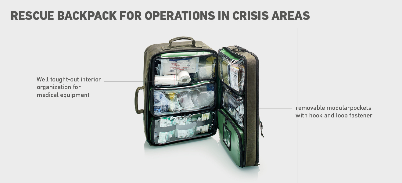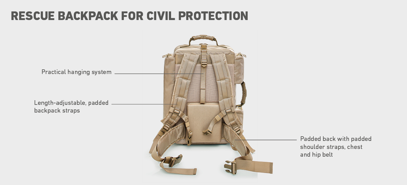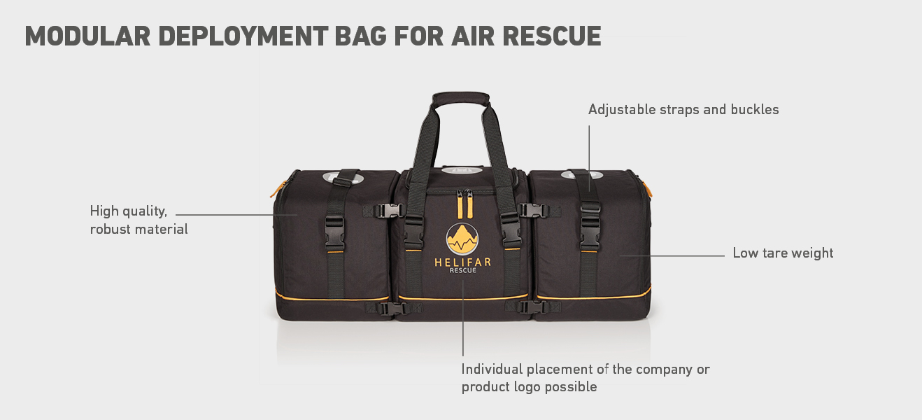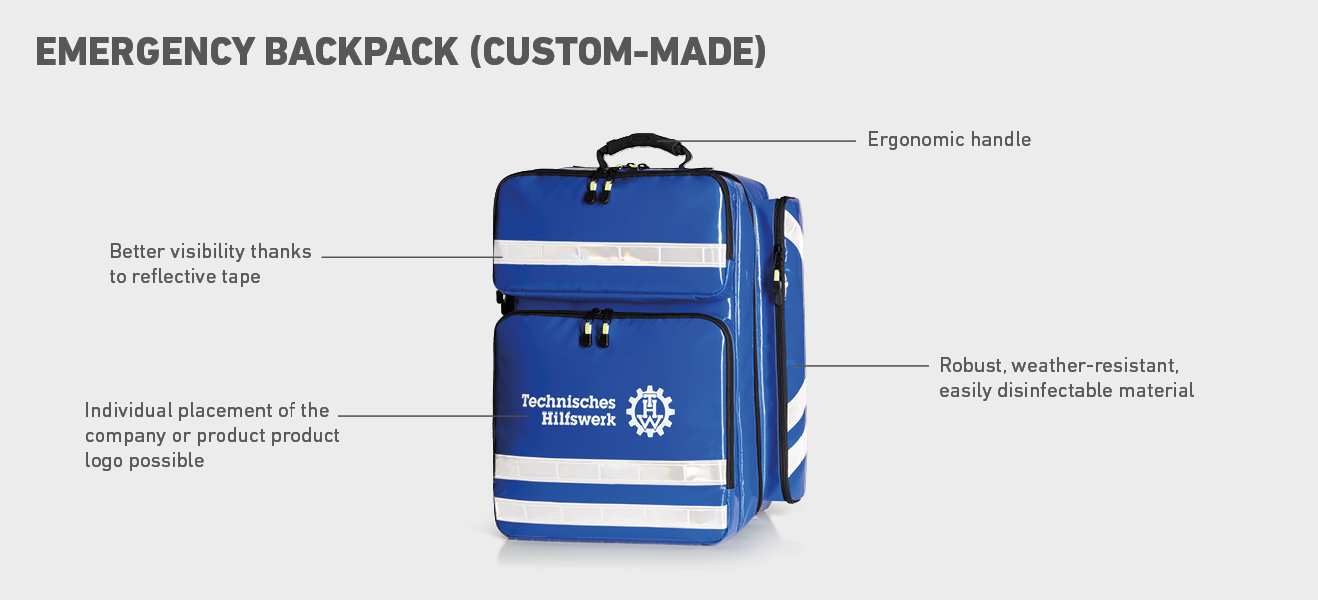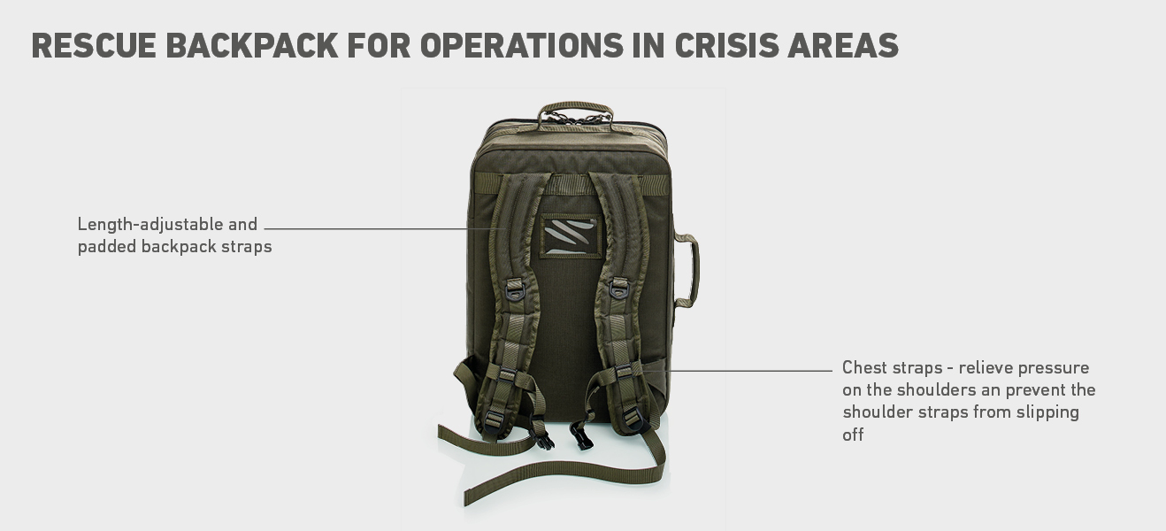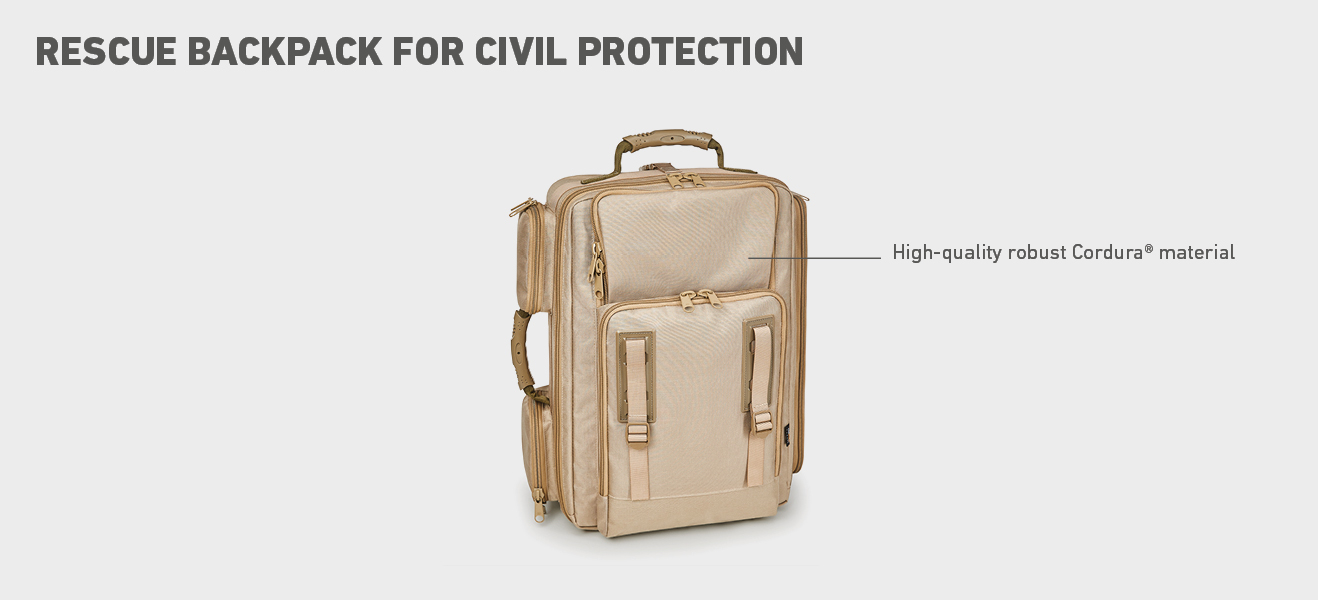 Whether they are used in the rescue service, in the military, by the police, whether as a small first aid bag or rescue backpack - emergency bags and rescue bags are united by the high demand for functionality. They do all that: