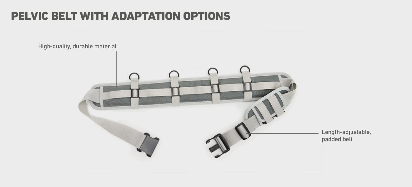 - Padded hip and pelvic belts for equipment and tools of all kinds, also with integrated pockets and special fasteners