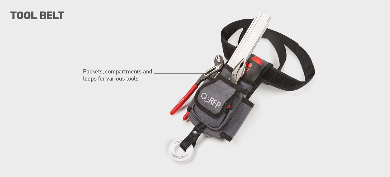 With carrying options via shoulder strap and/or handle. Comfortable to carry and use. - Tool belt
